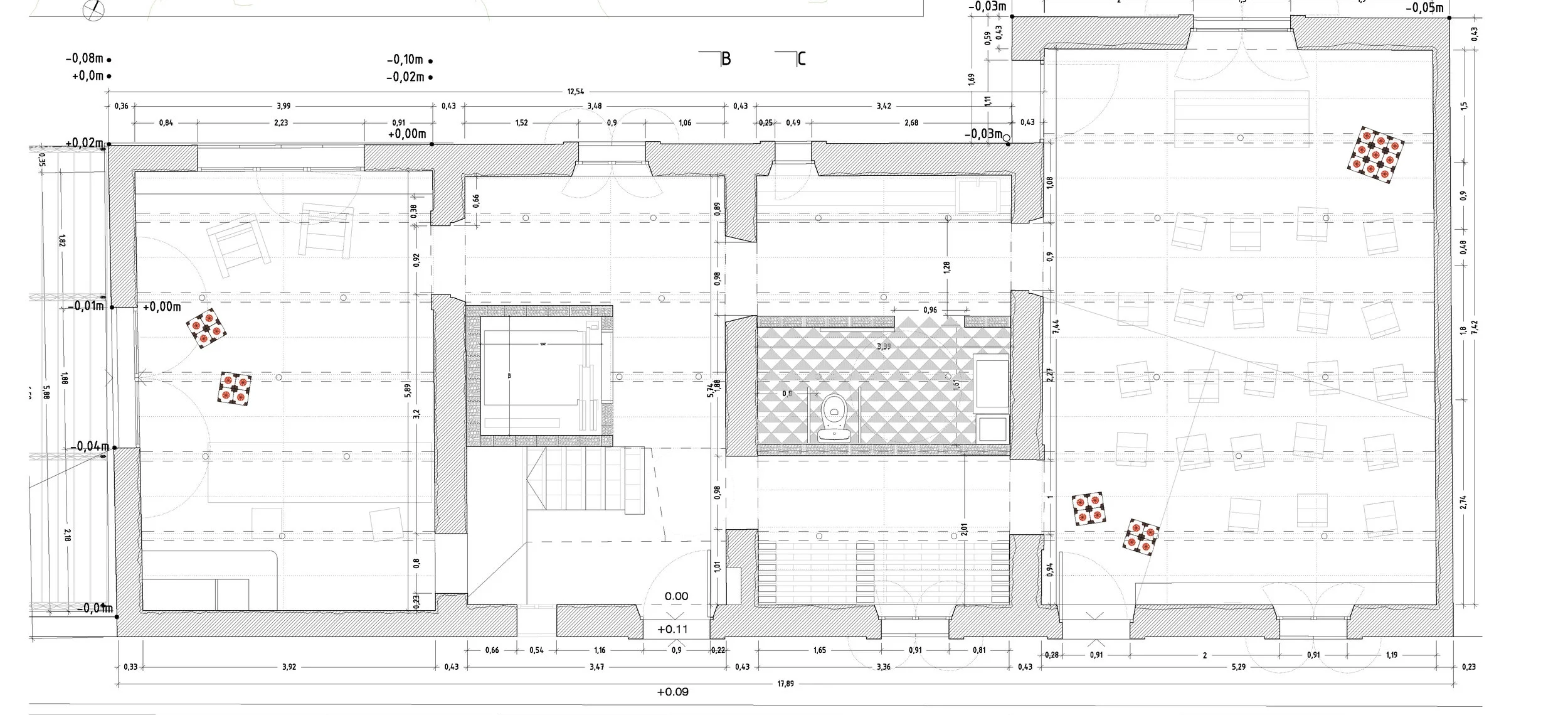1-The starting point of the project consisted in conserving every constructive element that was in a good condition, such as the masonry walls, the stairs, both the interior and exterior handrails and an ancient concrete basin, as well as the hydraulic tiles and the windows. Once the constructive pre-existences have been defined, they become the ones that define and configure the interior space, providing them with the prominence their presence imposes, neither altering nor adding elements that undermine them.