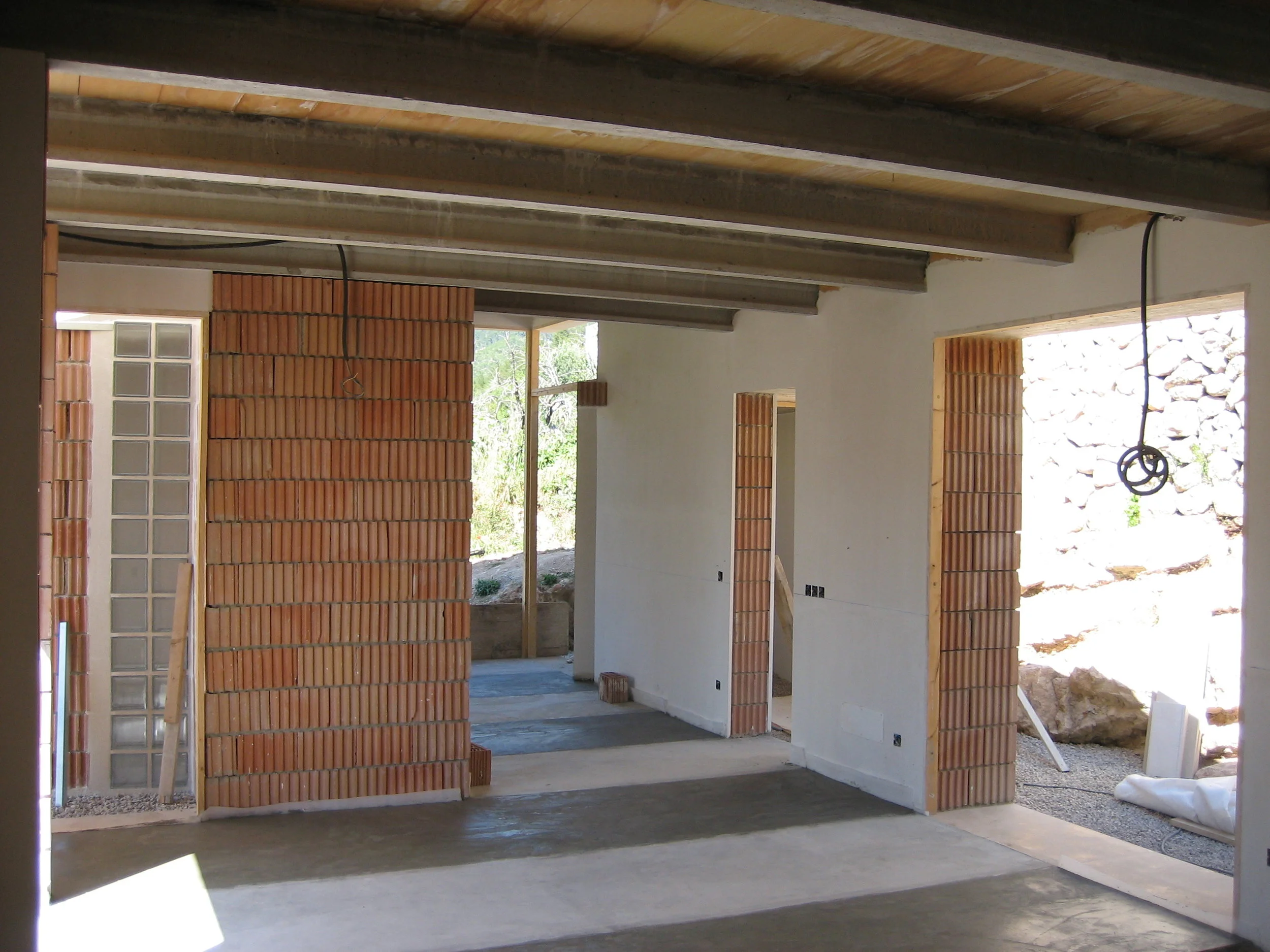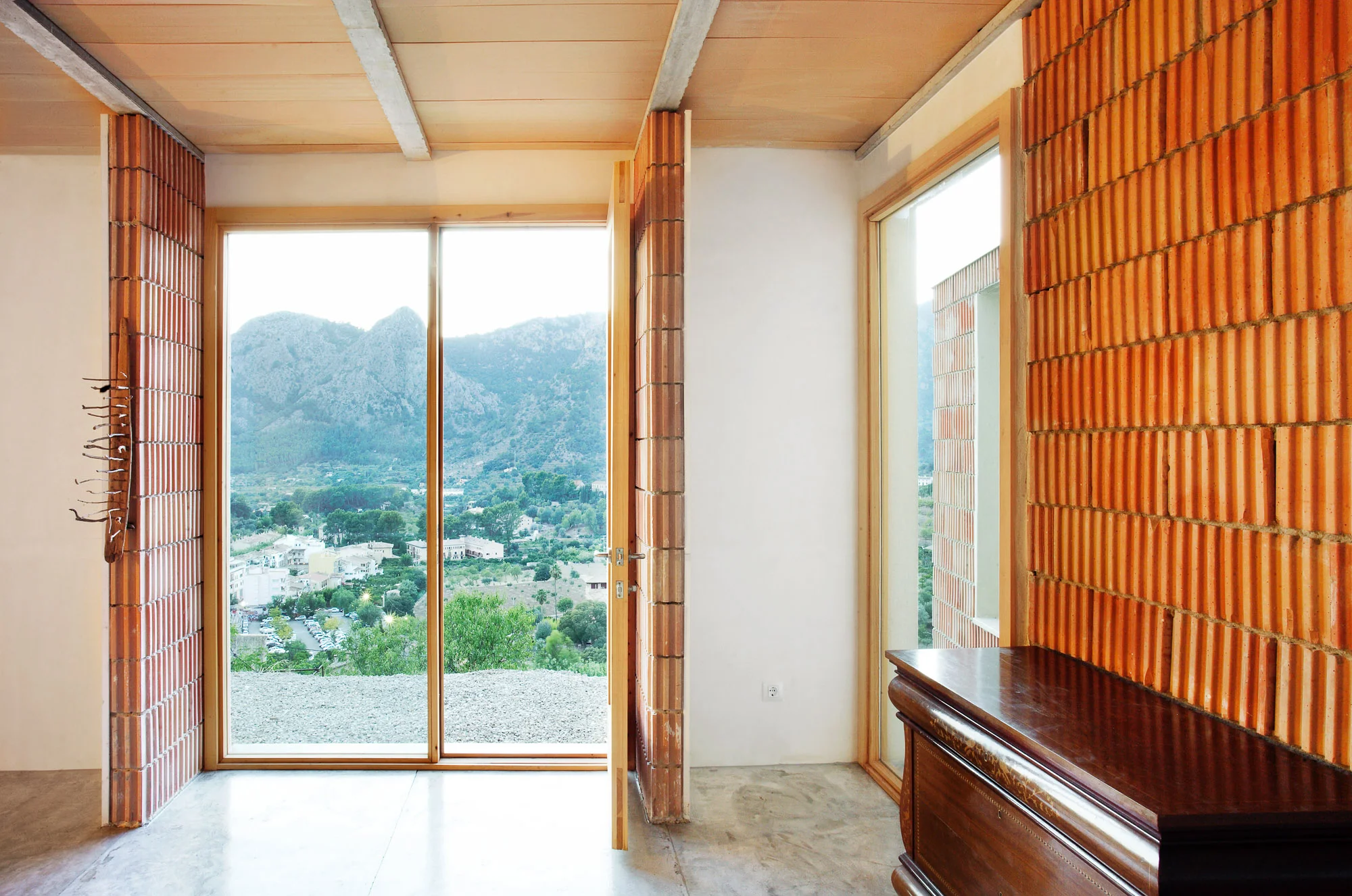 Few and standardized materials were chosen, such as thermal clay, concrete and wood. Thermal clay brick is an excellent solution to the needs for bearing capacity and insulation: it allows the vertical elements of a low-rise building to be realized in a single layer. It was implemented to build the wall using four types of pieces, and the tongue and groove of the bricks gives leeway for placing them in different positions and even reversing them. The roof is built using prestressed joists and ceramic top slabs, which are very common in Majorca. The joist girders allow the rows of slabs to be doubled; one is placed on top and subsequently the compression slab, and another below, creating an air chamber and a space for the installation passage.
